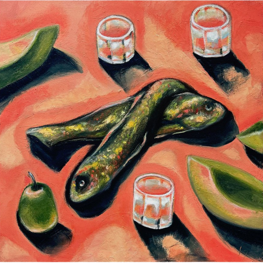Fishy Behavior | Papayas & Cigs | Sweet Cherries | Oil on Canvas | Sold